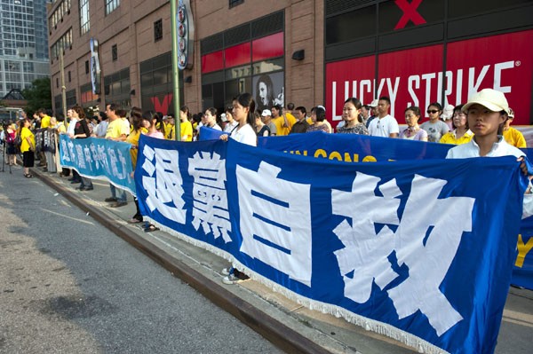 反迫害十周年之际,学员汇集在纽约中领馆前和平抗议残酷迫害
