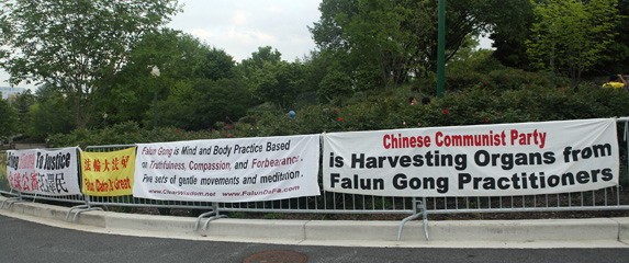 美国器官移植研讨会在佛州Marriott宾馆举行,法轮功学员在宾馆前和平抗议中共暴行