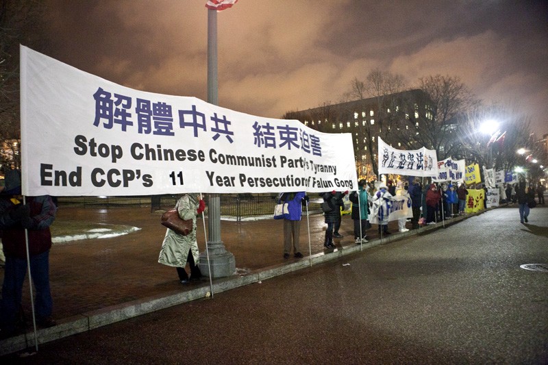 法轮功学员多年坚持在华盛顿DC中使馆前和平抗议