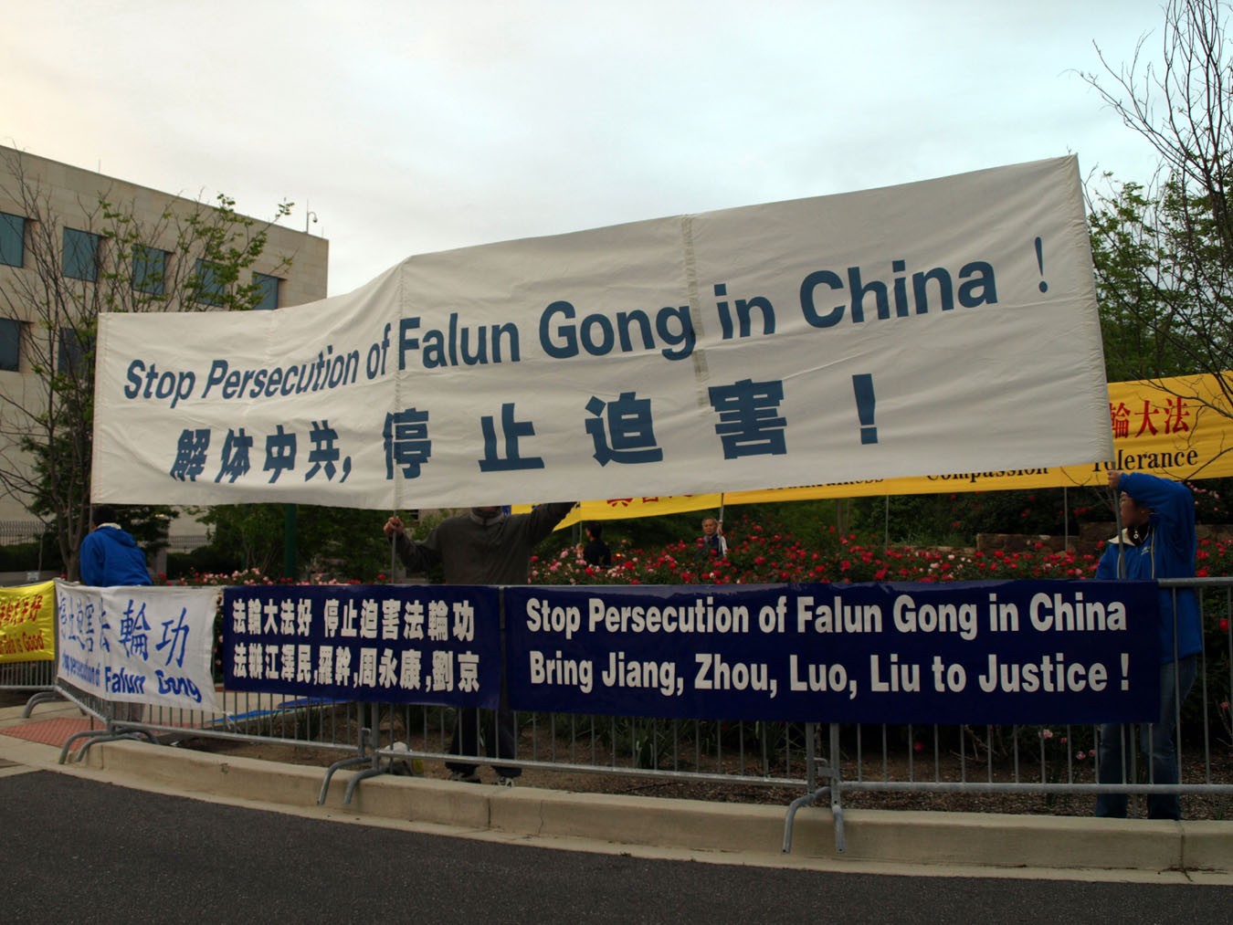 法轮功学员在中共驻美使馆前纪念“四•二五”吁制止迫害(图)