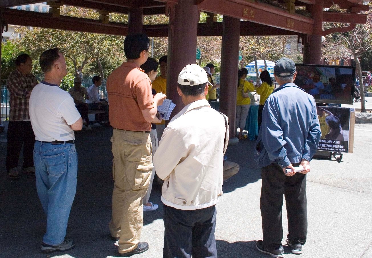 纪念“四•二五”,法轮功学员在旧金山中使馆前和平反迫害