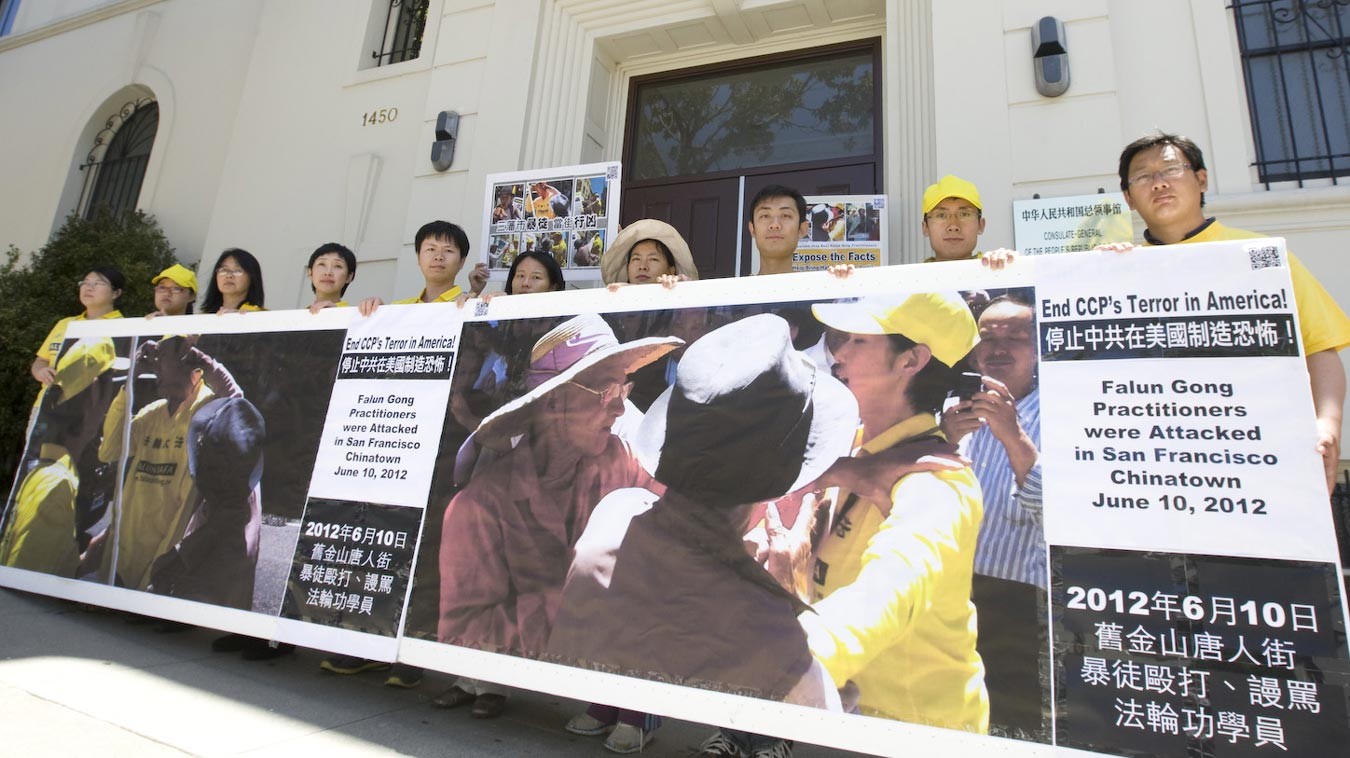 法轮功学员在旧金山中领馆前呼吁制止迫害