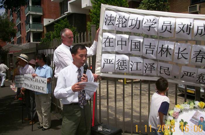 悉尼法轮功学员岁末中领馆前召开新闻发布会 悼念在圣诞节期间被迫害致死的刘成军并强烈呼吁严惩江泽民、严惩恶警及杀人凶手