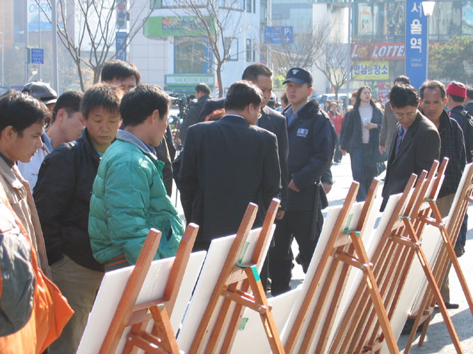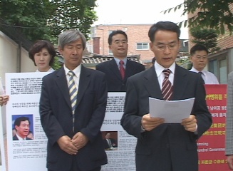 促中共官员弃恶从善 韩国学员向中使领馆宣读公告━2005年10月24日