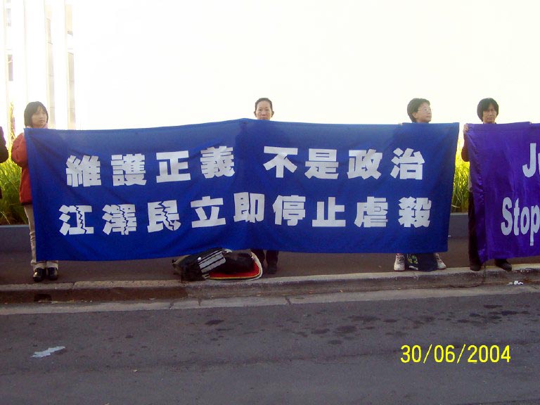 澳洲法轮大法学会要求政府禁止参与迫害法轮功的中共犯罪官员张德江入境2005年11月4日