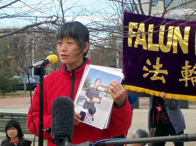 法轮功学员澳洲公民章翠英在起诉澳洲外长唐纳的新闻发布会上