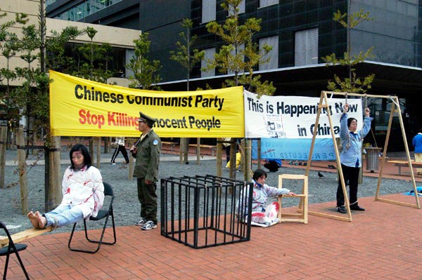 香港法轮功学员在新闻发布会上展出的图片
