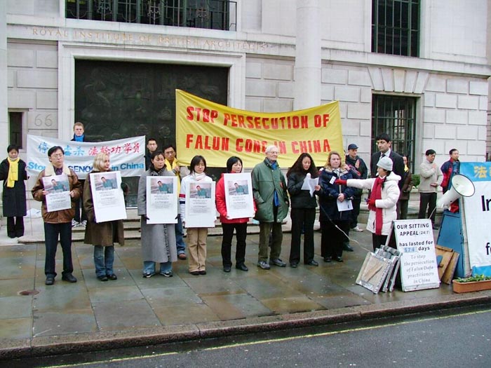 国际人权日,英国学员在伦敦中使馆前抗议中共迫害 2005-12-10