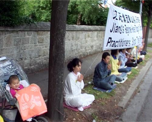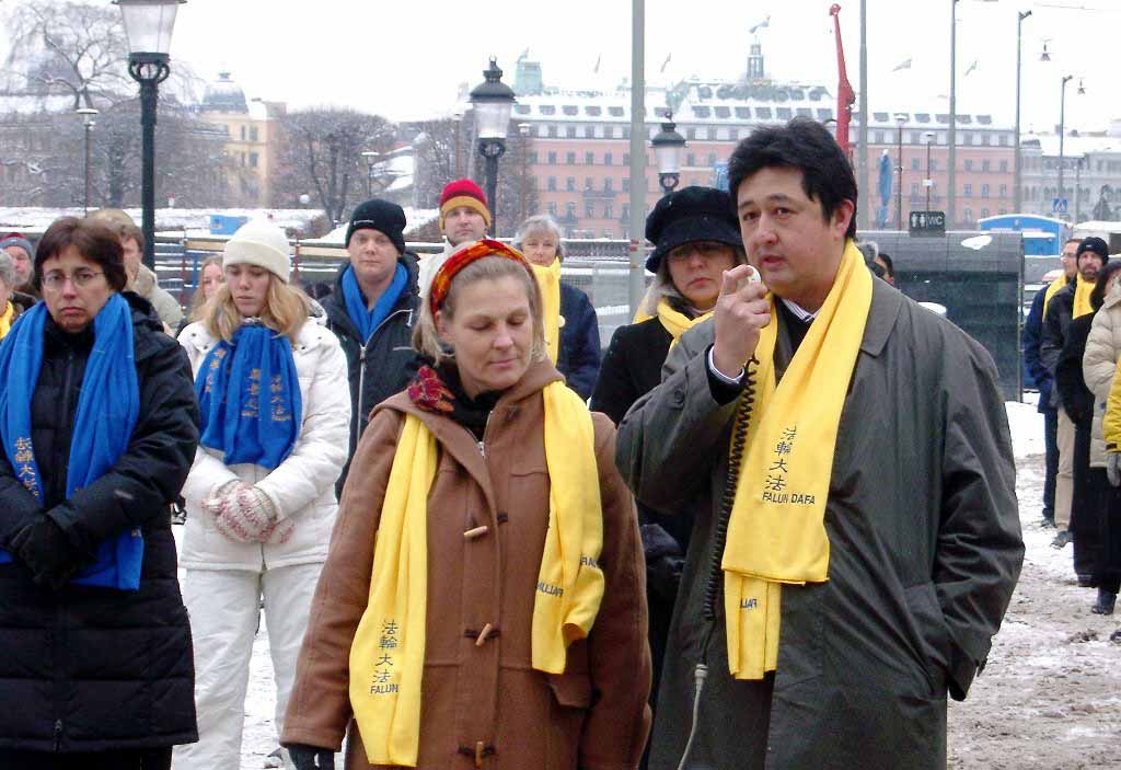 瑞典学员中使馆前宣读法轮大法学会公告─2005年11月4日