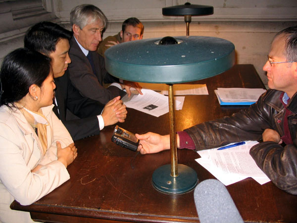 温家宝访问捷克期间,法轮功学员召开新闻发布会,展现和平抗争 2005-12-8--9