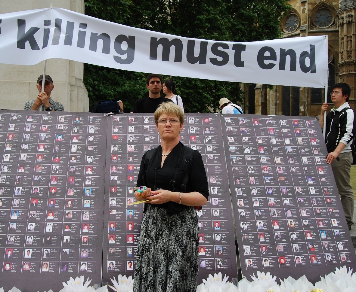 英国法轮功学员伦敦集会反迫害 - 来自澳洲的安(Ann)含泪说道:“太恐怖了!这场迫害根本就不应该发生!”
