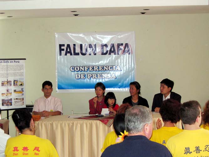 曾庆红访问秘鲁 南美洲法轮功学员起诉曾庆红新闻发布会现场