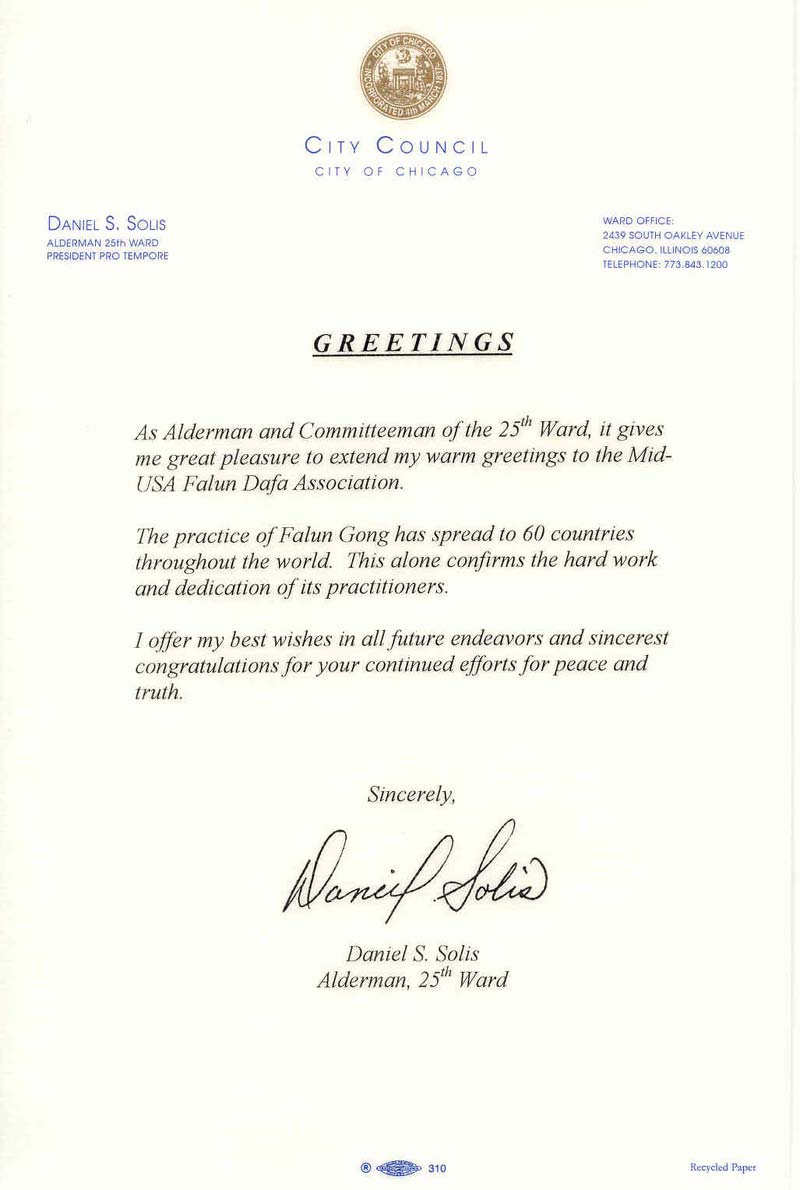 Published on 6/25/2003 芝加哥市议会第25区议员给美中法轮大法协会的贺信