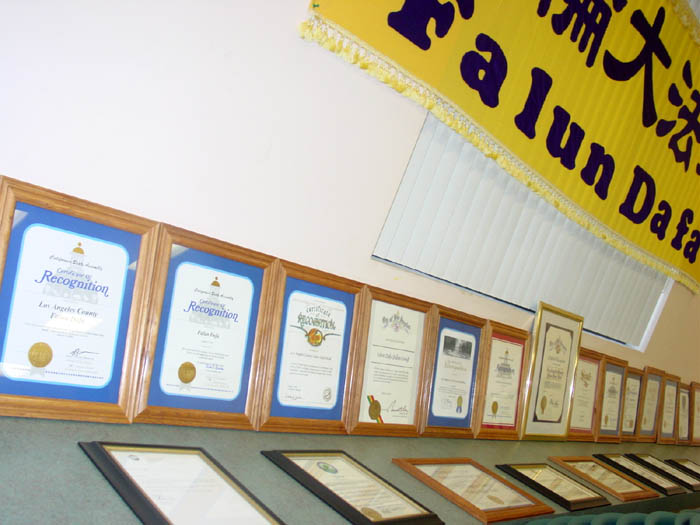 加州洛杉矶县“法轮大法周”,各级官员为本次庆祝活动颁发了40个褒奖状