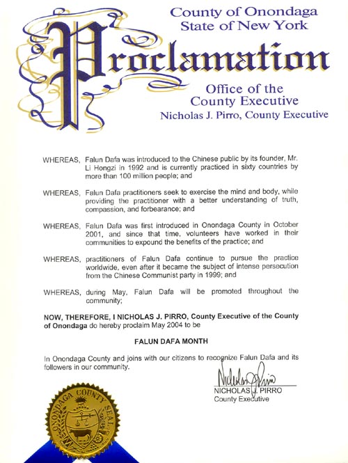 纽约州奥拿达噶郡宣布法轮大法月