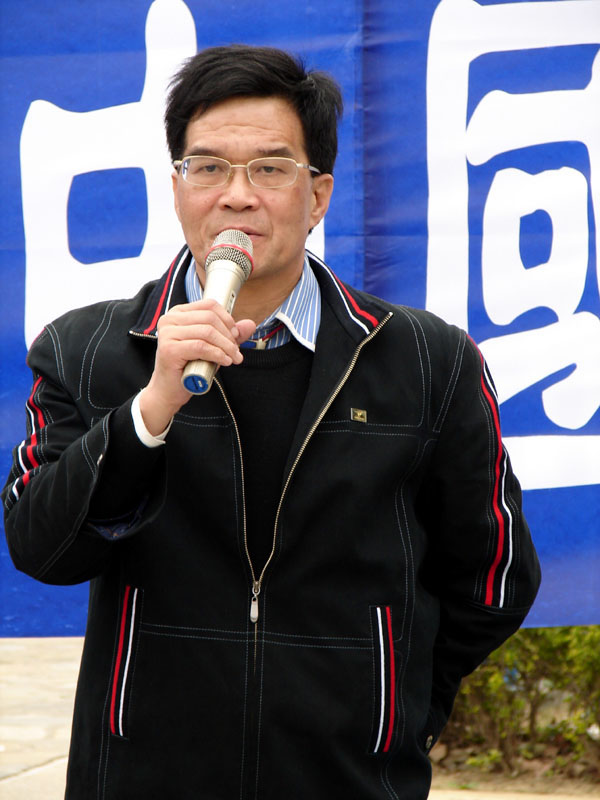 法轮功学员和各界人士在高雄集会声援四千万勇士退出中共图为议员郑新助发言2008-7-20