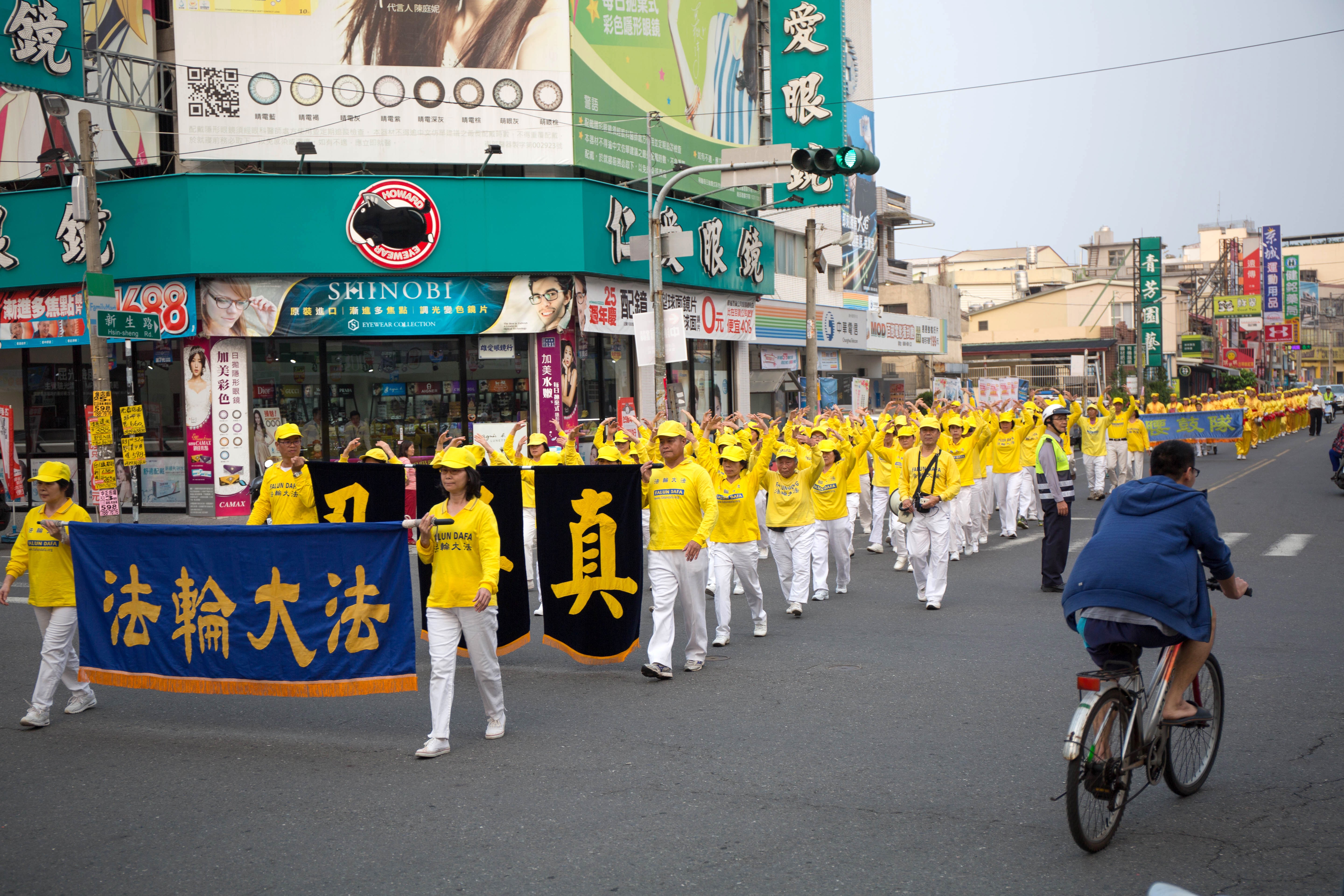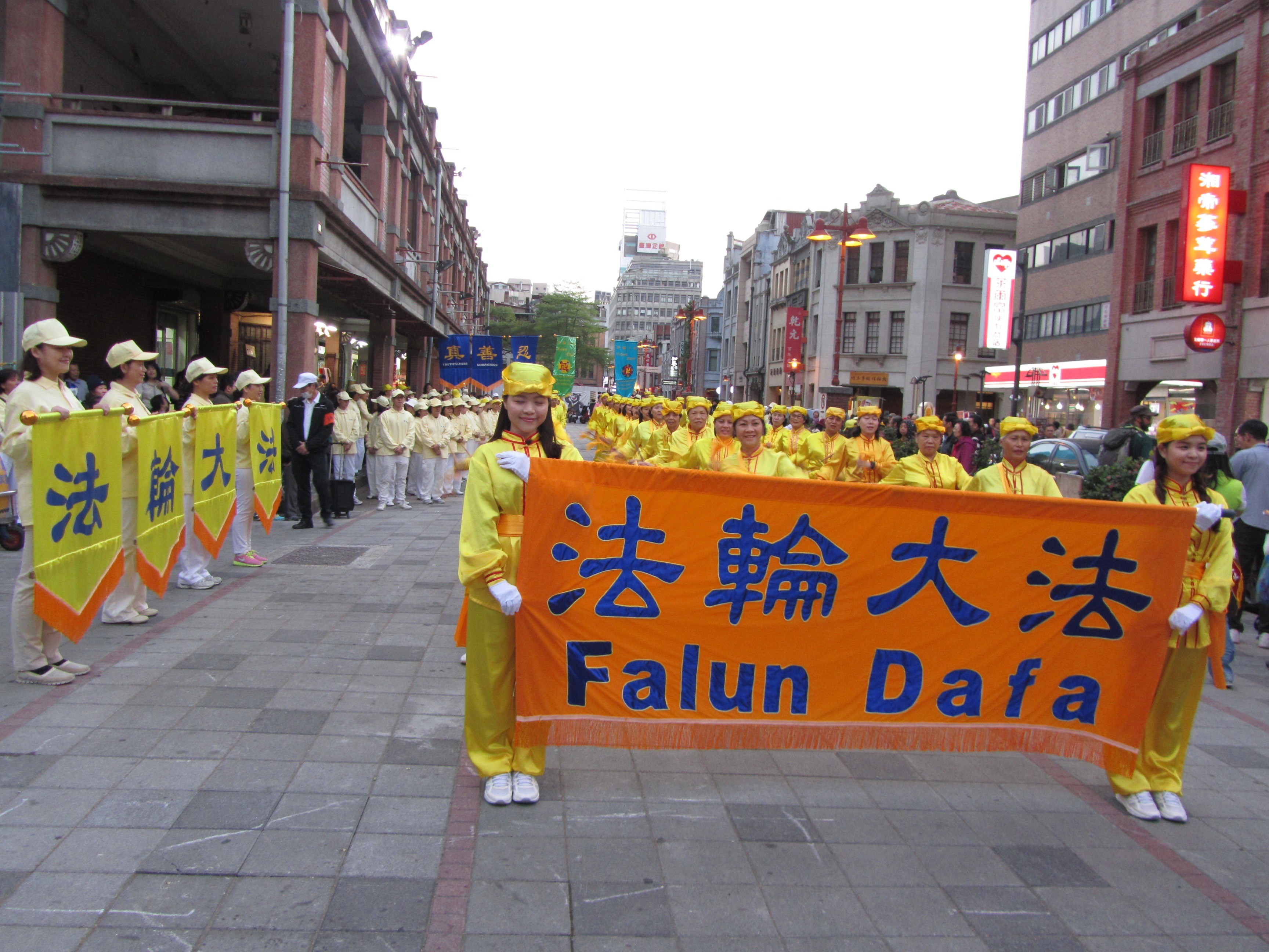 法轮功学员参加关渡节共襄盛举踩街游行活动,里长称赞法轮功