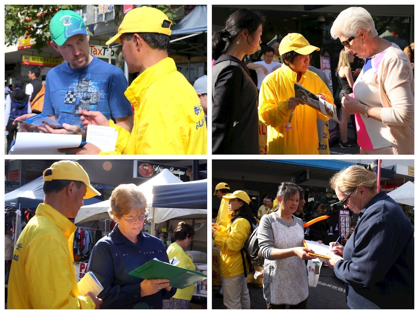 法轮功学员参加墨尔本新年节庆,向民众讲真相及征签