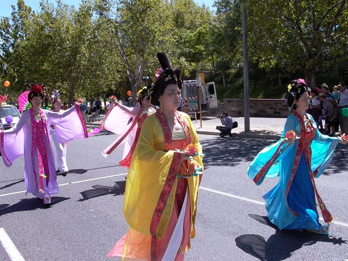 法轮功学员首次参加悉尼华人新年游行 图为由法轮功学员表演的唐装舞蹈
