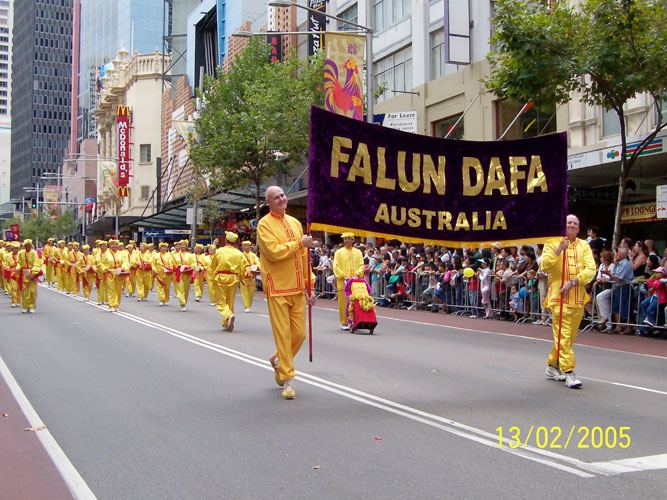 法轮功学员首次参加悉尼华人新年游行 图为首次参加悉尼华人新年游行的法轮功学员方阵