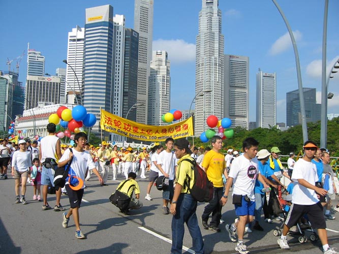 法轮功学员参加新加坡大竞走活动 受到群众欢迎