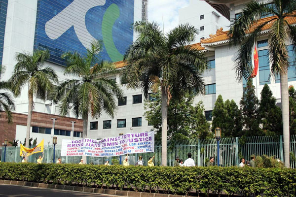 印尼法轮功学员于"世界反迫害日"举行游行,反对中共对法轮功的迫害