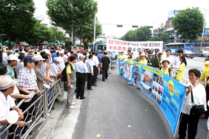 2005年韩国法轮大法法会在釜山召开期间 韩国法轮功学员发表声明呼吁中共停止迫害法轮功