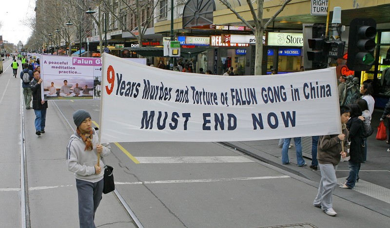 法轮功学员在澳洲墨尔本举行反迫害集会游行并呼吁结束长达九年的邪恶迫害2008-7-20