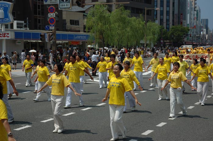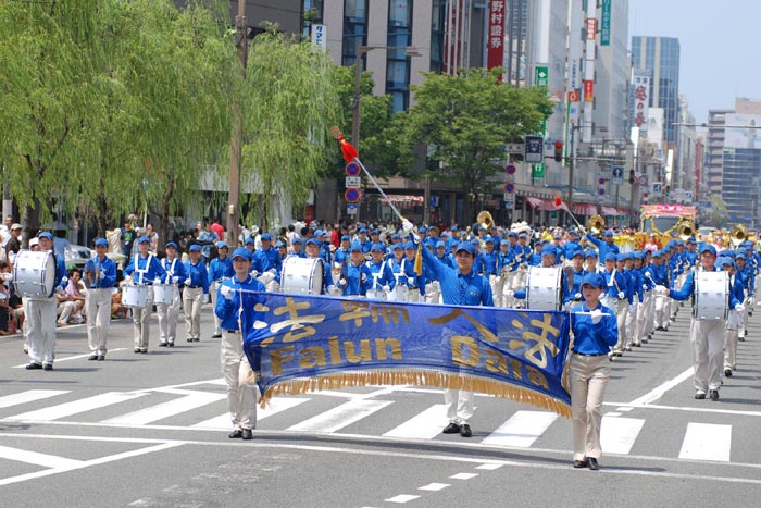 法轮功学员参加日本“新泻节”庆祝活动大游行以气势磅礴的阵容赢得观众的喝彩2008-8-9