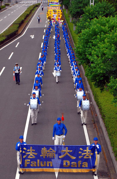 法轮功学员在日本千叶县的海滨幕张地区举行游行,洪扬大法并呼吁制止中共迫害,2008-8-10