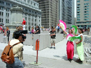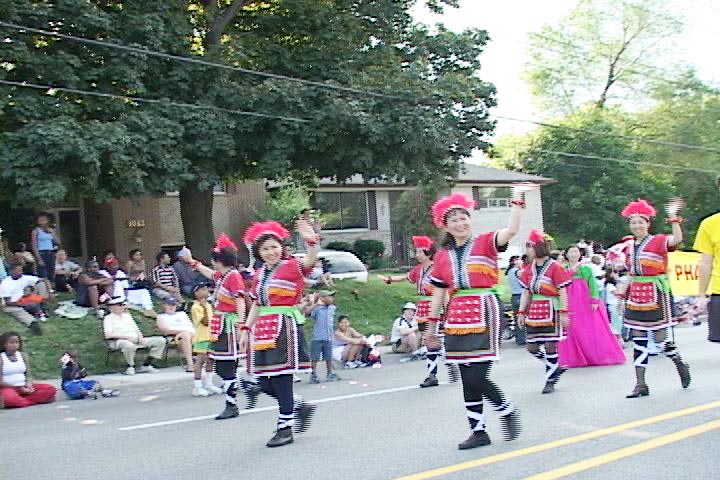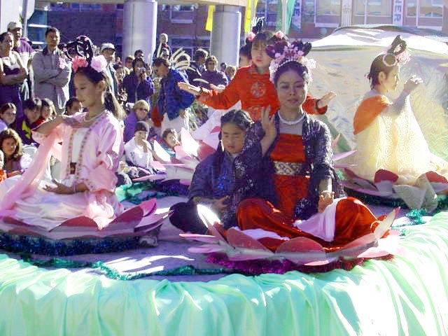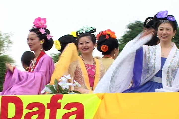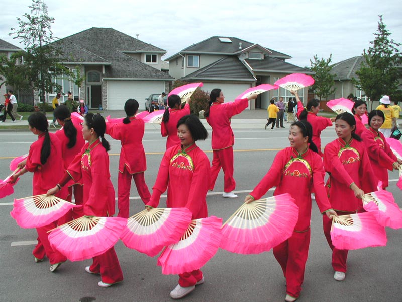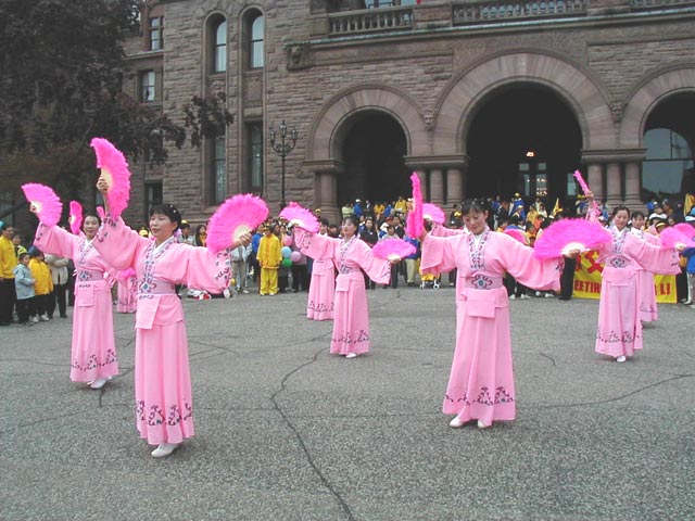 温哥华游行中的舞蹈队展示出大法的美好 2003-7-4