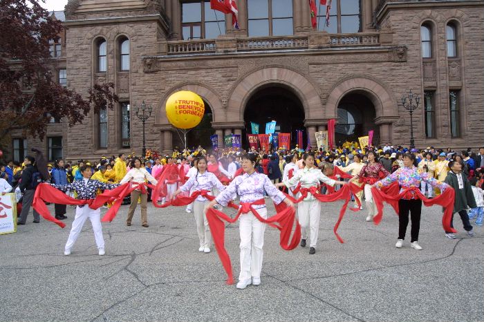 来自多个国家的法轮功学员在多伦多市中心举行盛大的庆祝游行