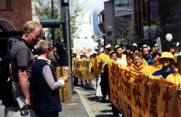 温哥华游行展示了大法的美好 练功队伍 2003-7-4
