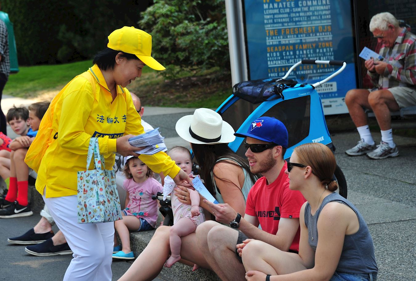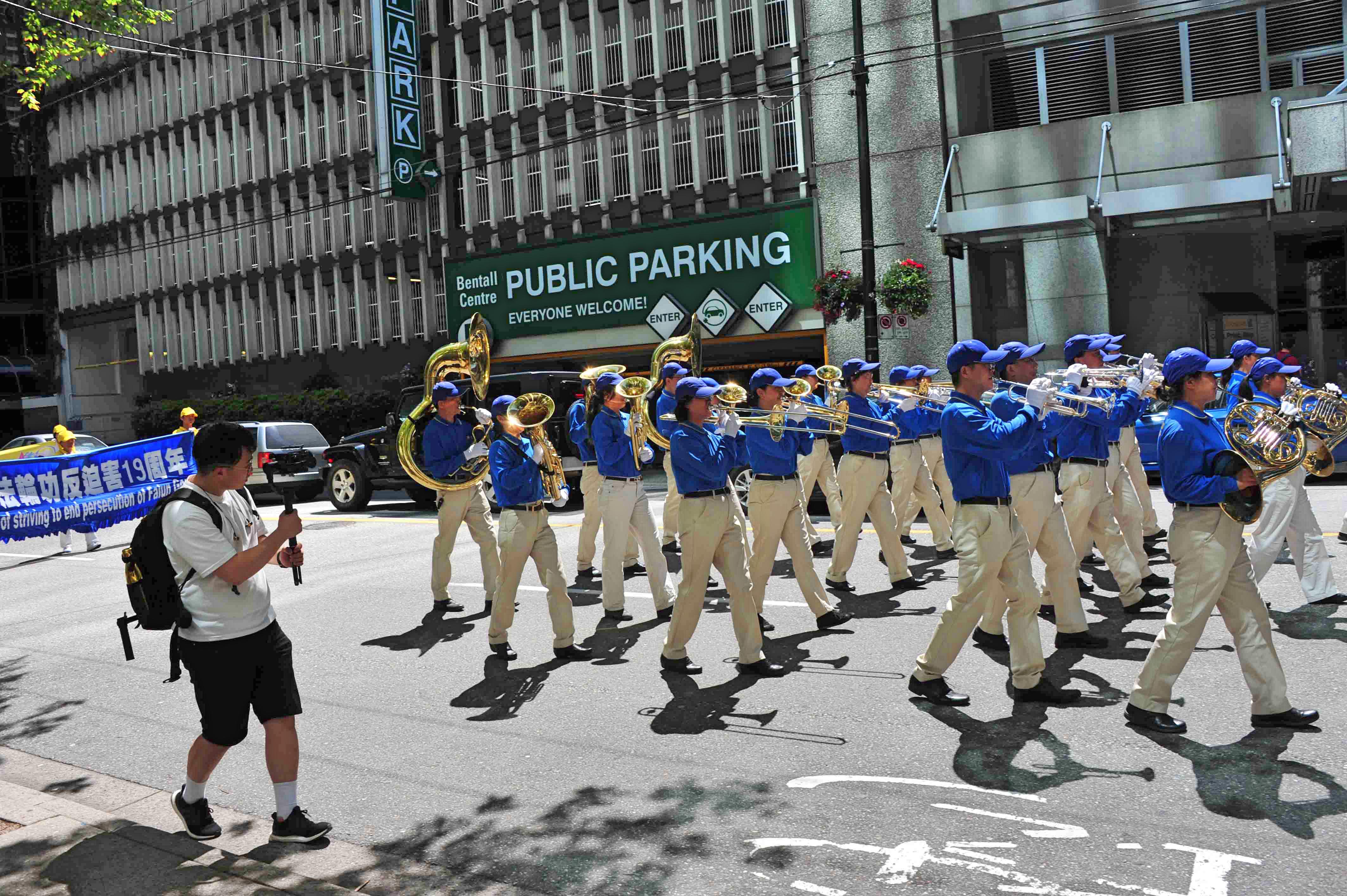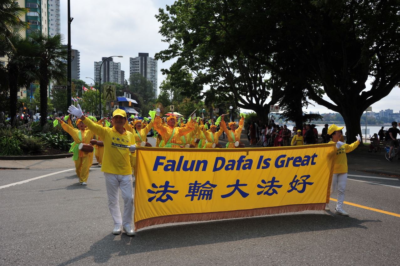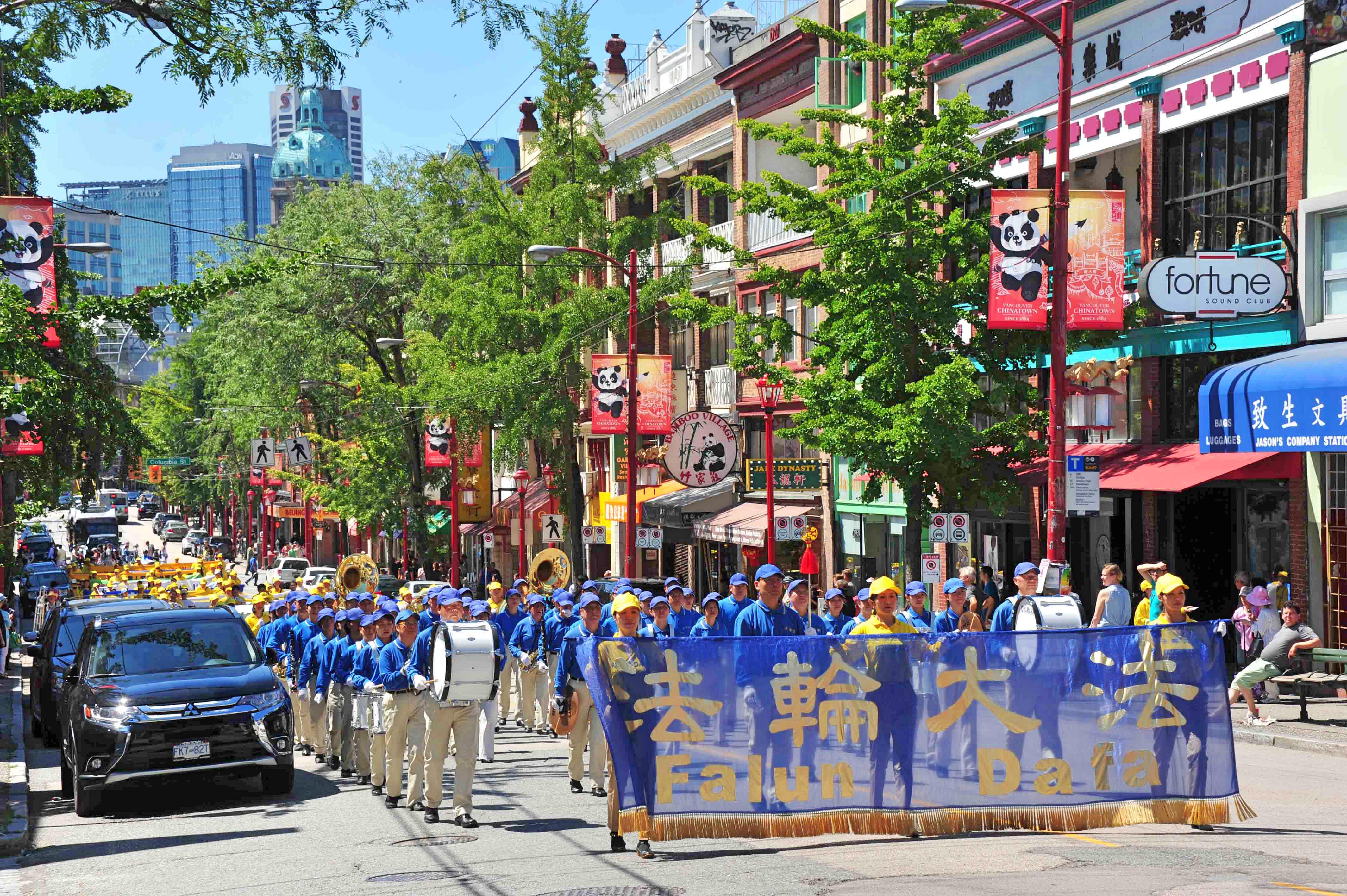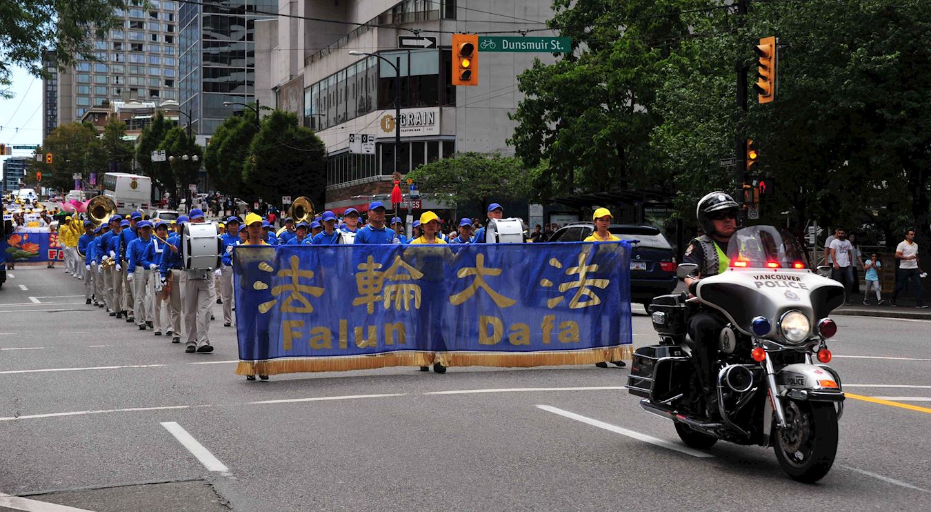 法轮功学员参加温哥华市中心海滨大道举行的游行,传递大法美好