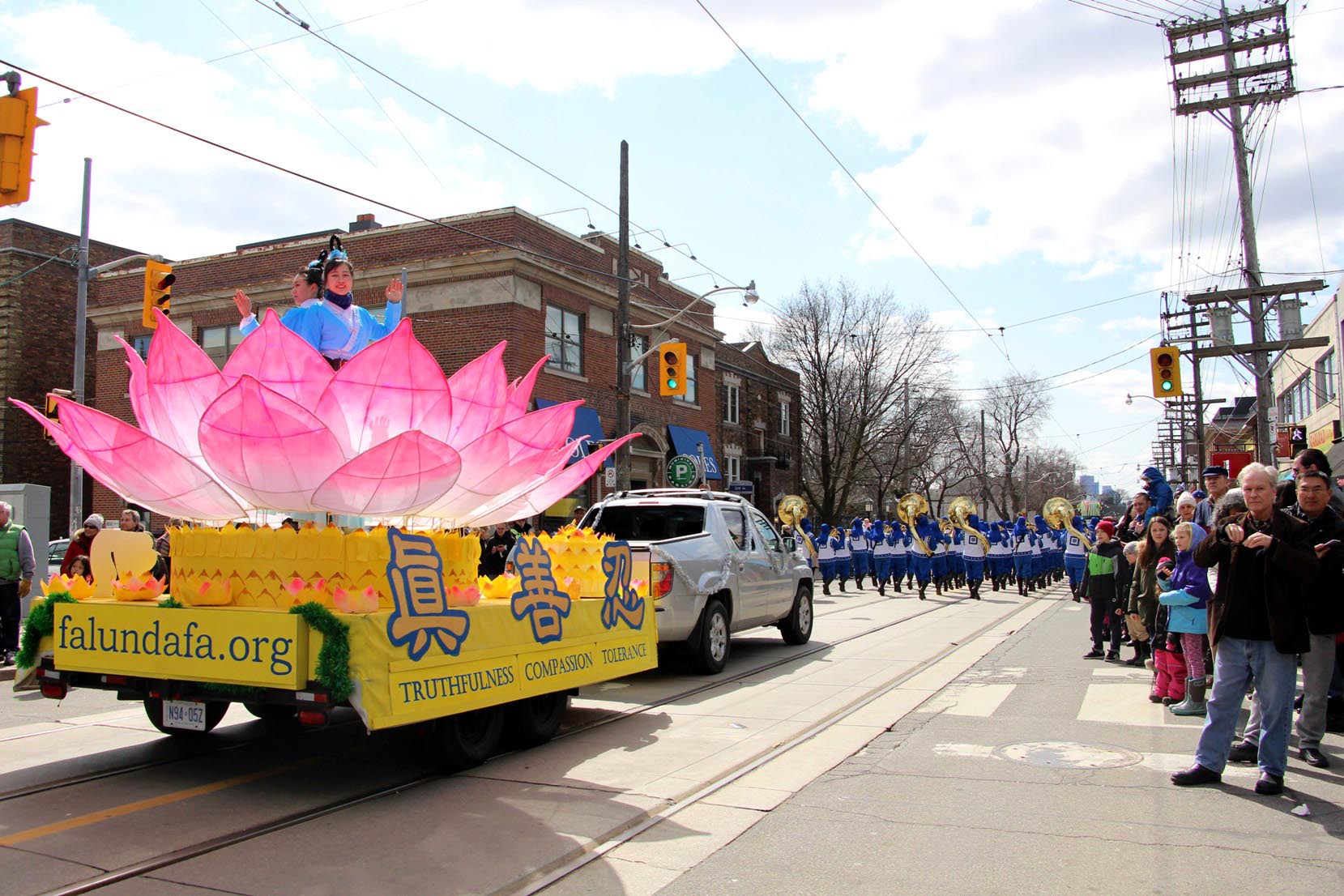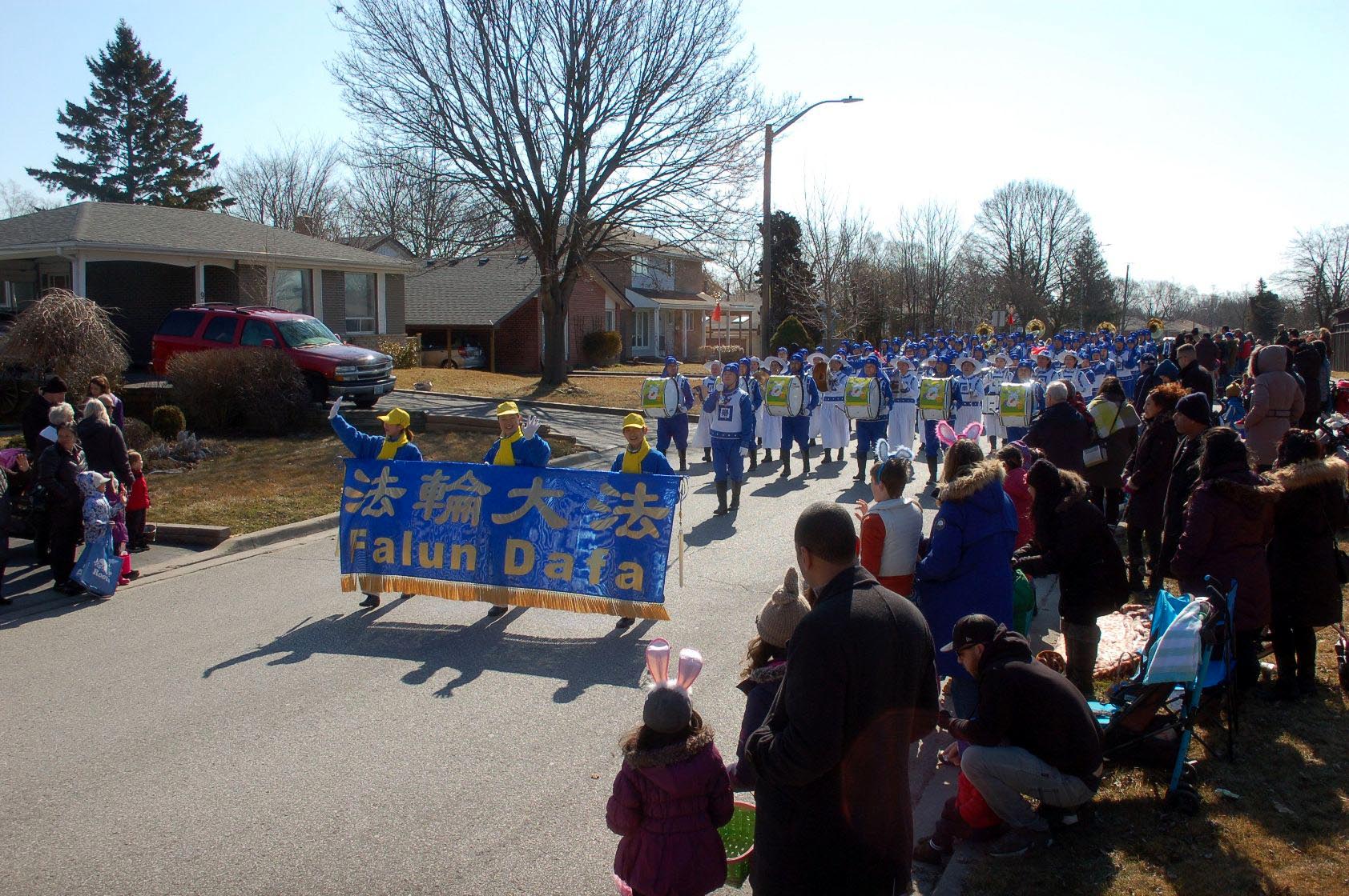法轮功学员参加多伦多的盛大复活节游行,非常壮观,绚丽