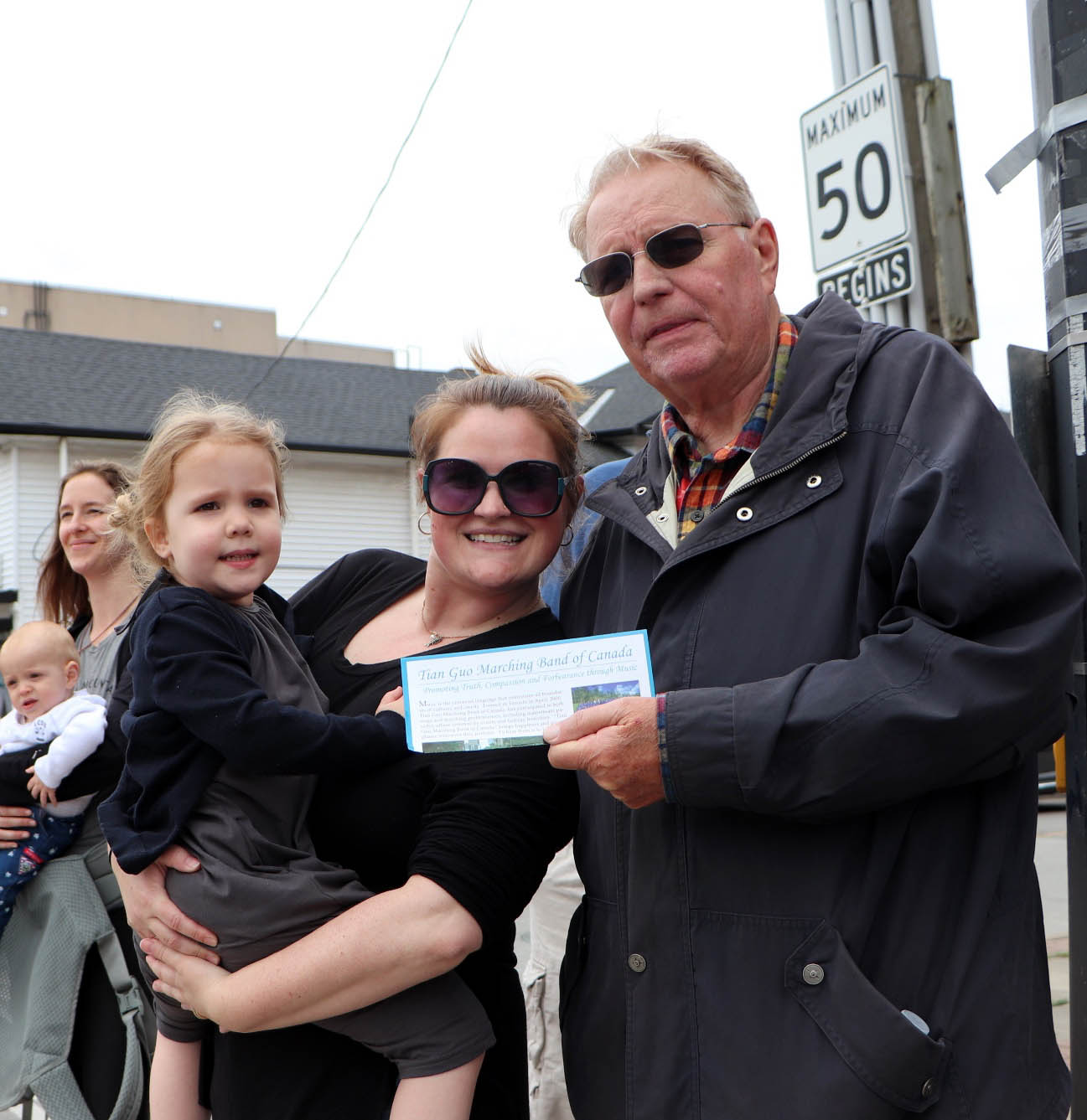 法轮大法学员参加新西敏市海悦节游行,受到观众热烈欢迎