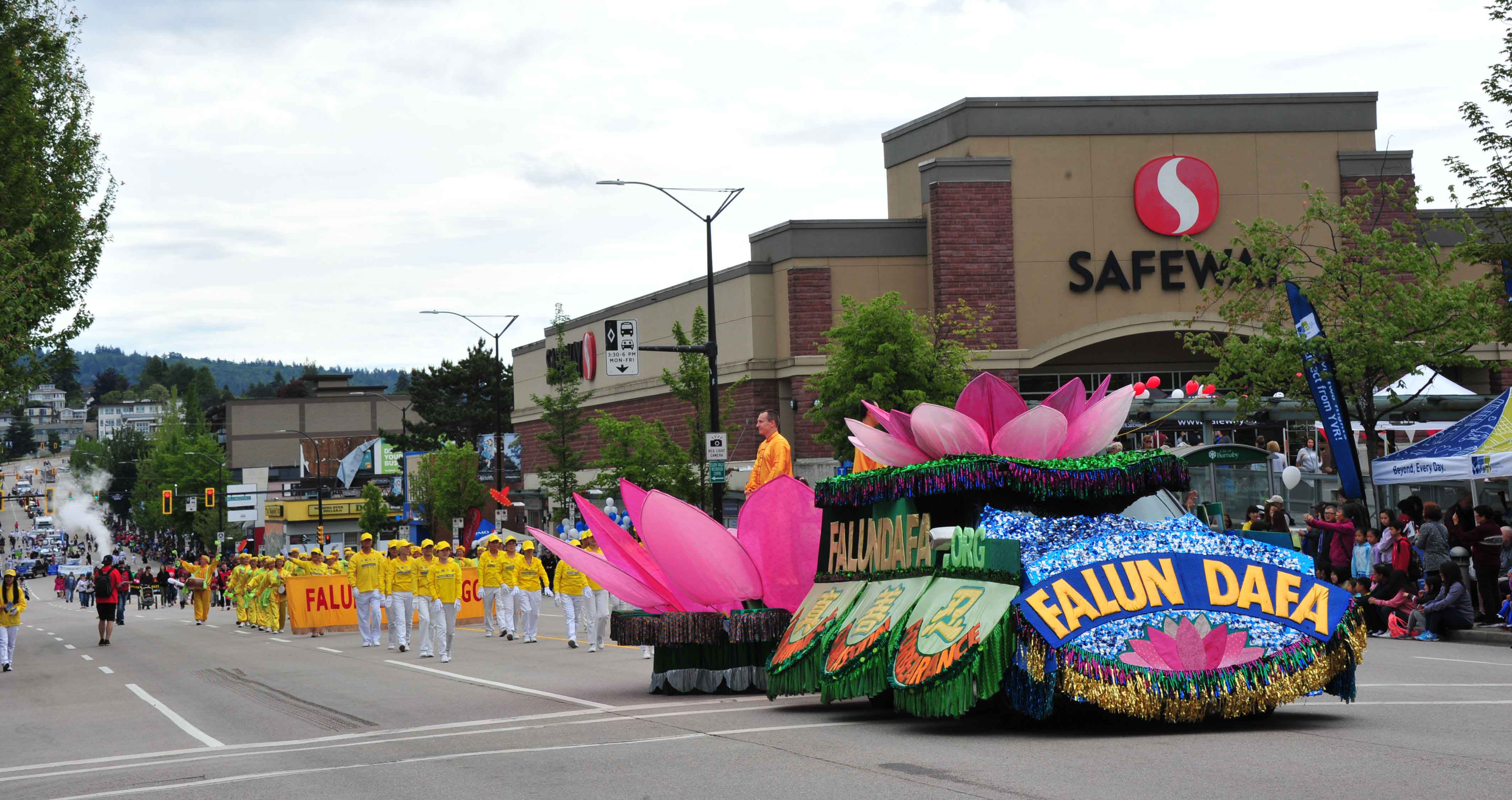 法轮功学员参加班芙镇国庆游行,受到组委会赞扬
