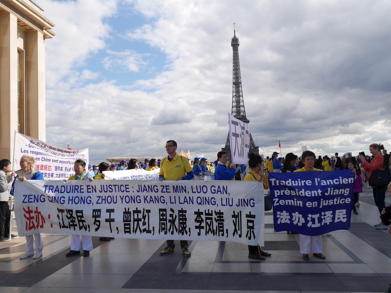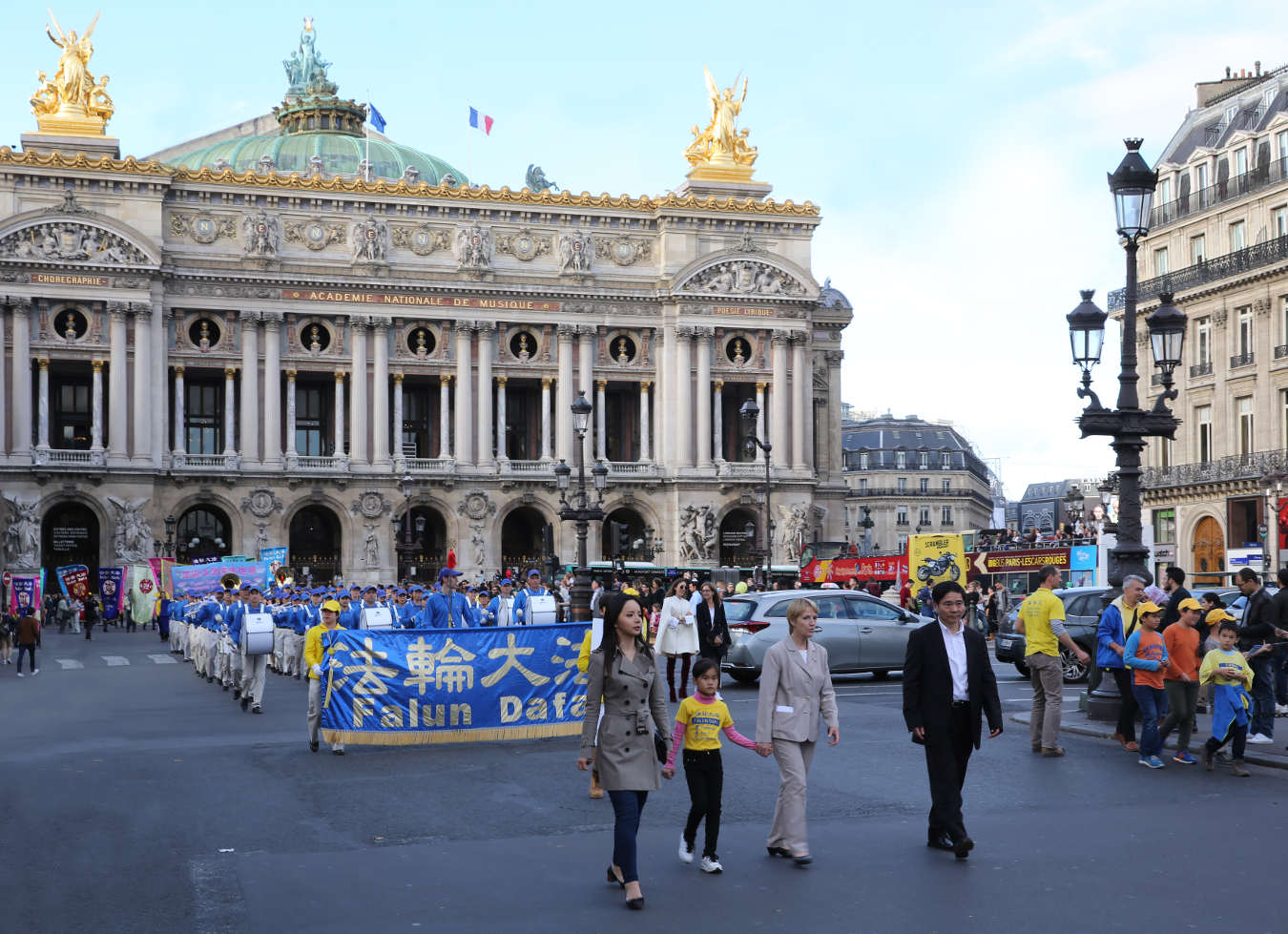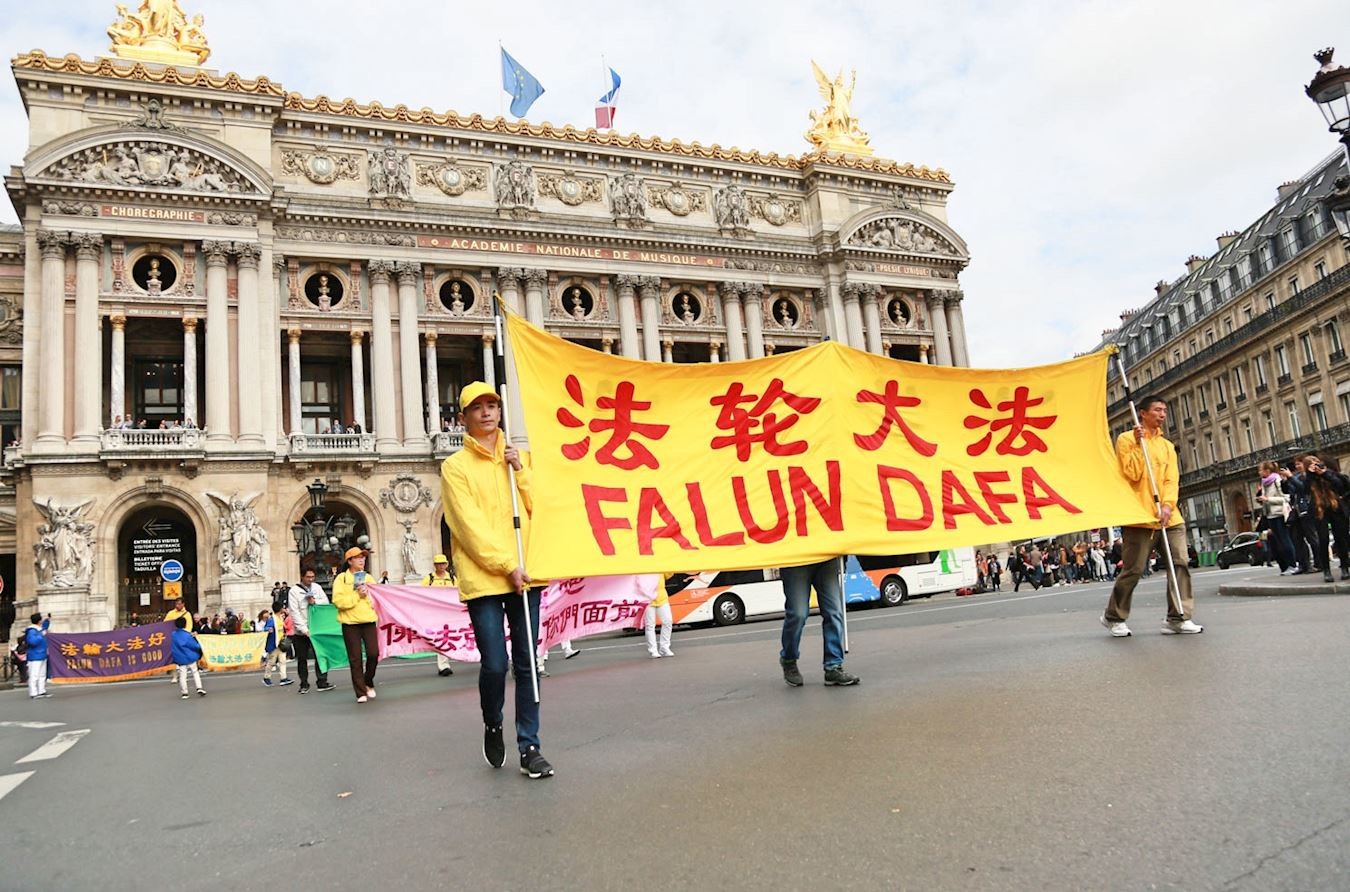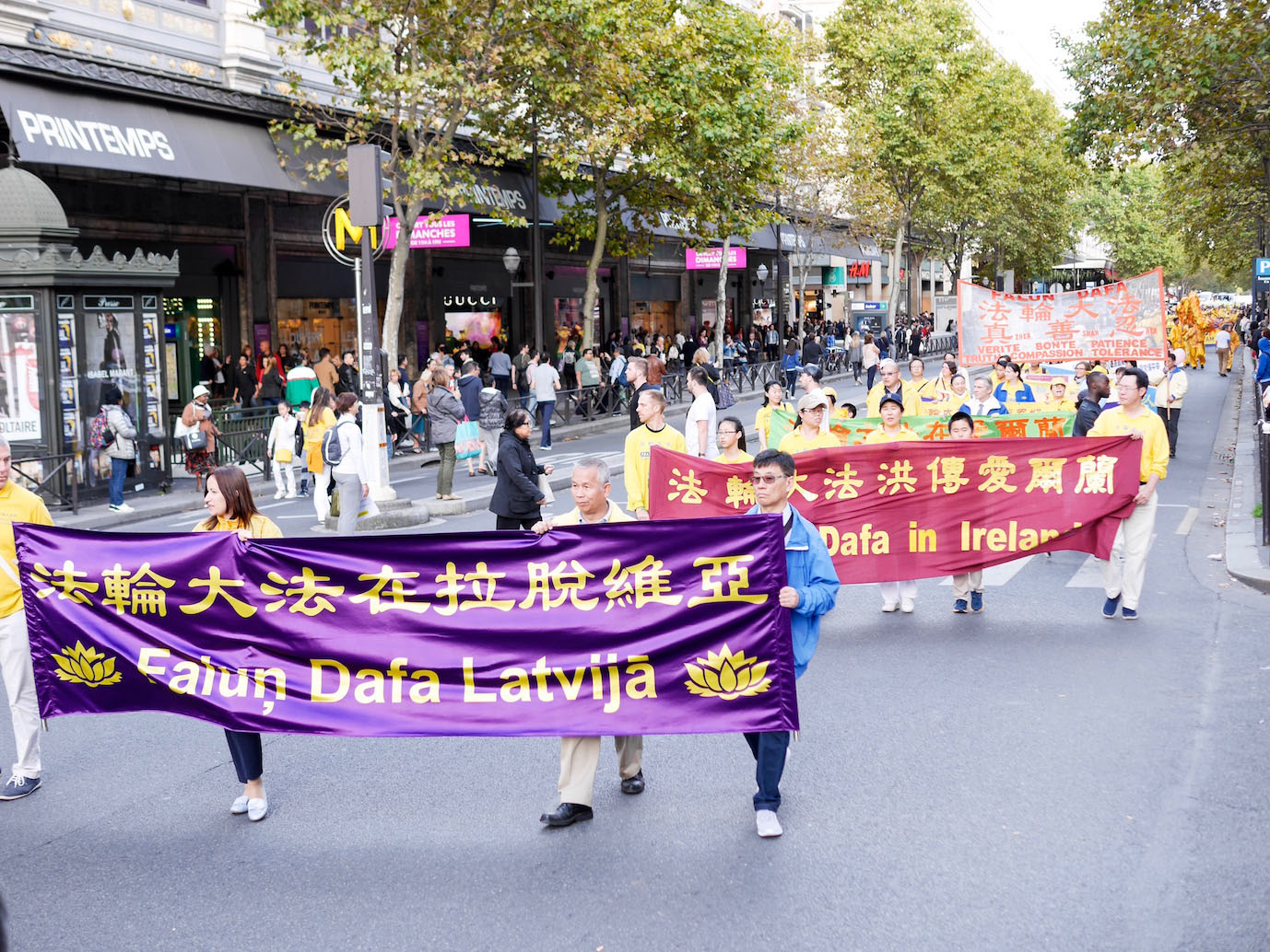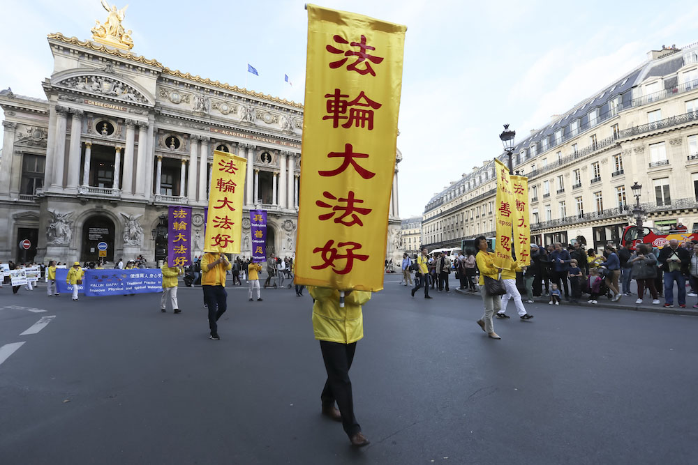 法轮功学员在巴黎市中心举办游行活动,呼吁共同制止迫害