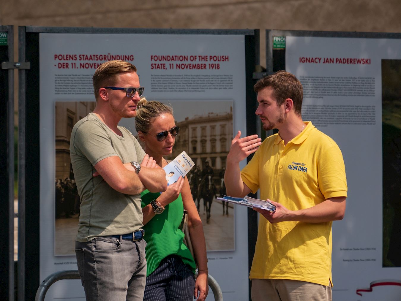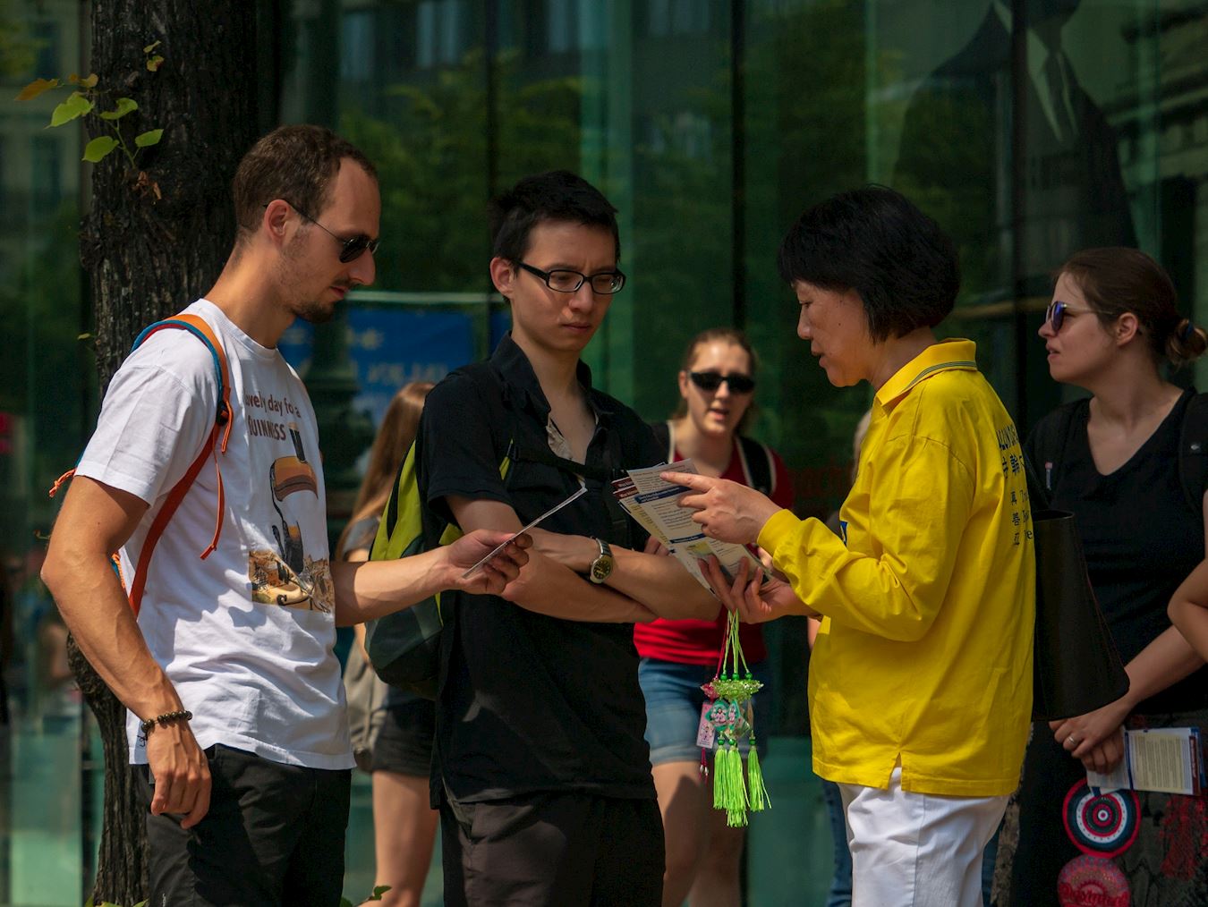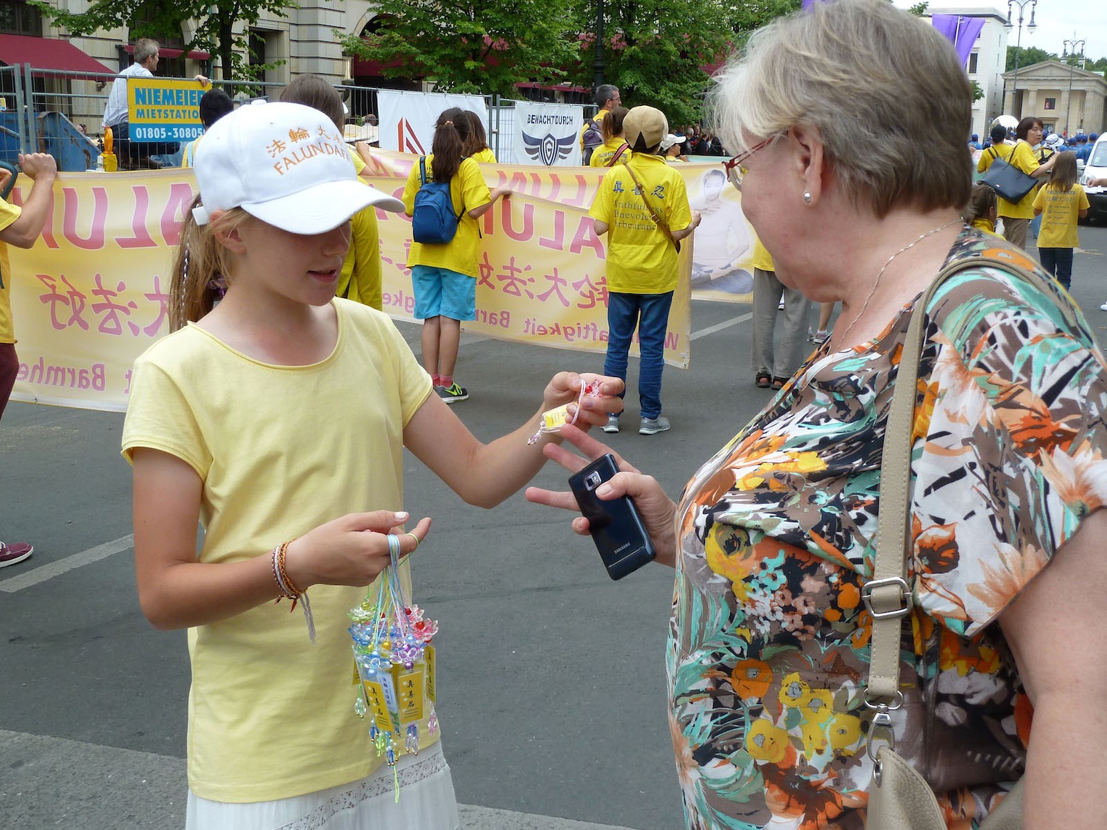法轮功学员在柏林游行,展示大法的美好并揭露中共活摘器官,民众表示震撼