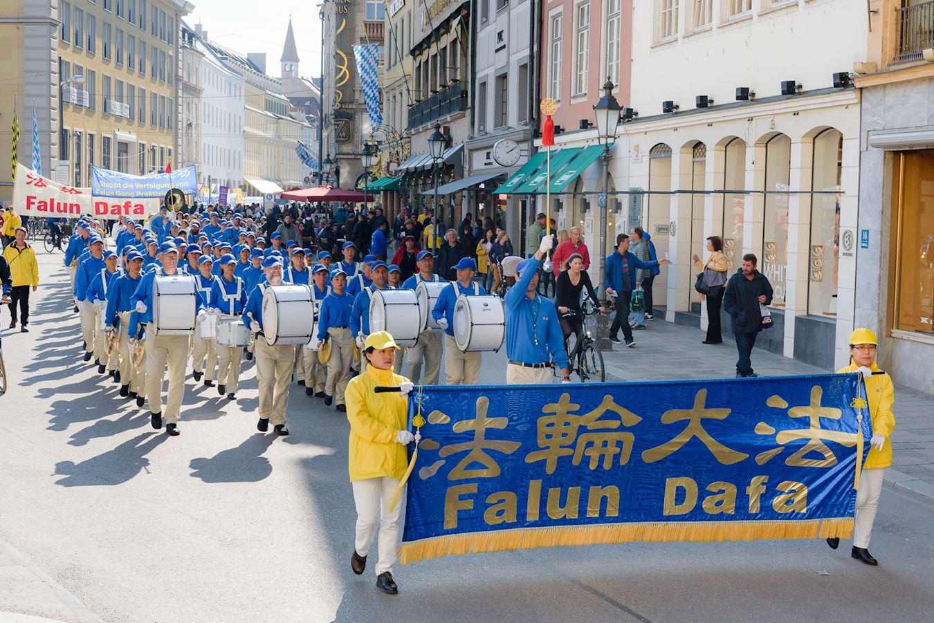 法轮功学员在慕尼黑市中心集会和游行,呼吁共同制止中共迫害