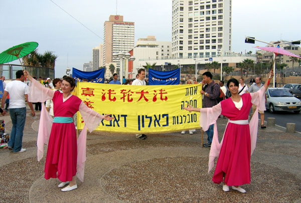 以色列法轮大法修炼心得交流会在耶路撒冷举行期间举行洪法游行2005-12