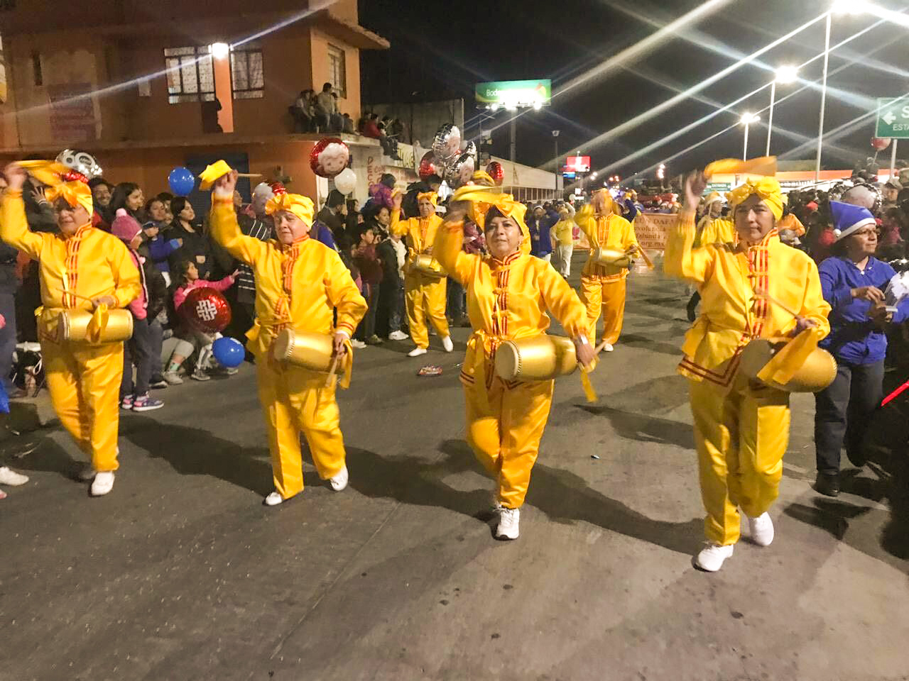 法轮功学员参加墨西哥等不同城市的圣诞节游行活动,受到观众的热情欢迎。