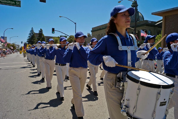 法轮功学员参加北加州木城国庆游行 图为天国乐团展风采受到观众的欢迎2007-7-4
