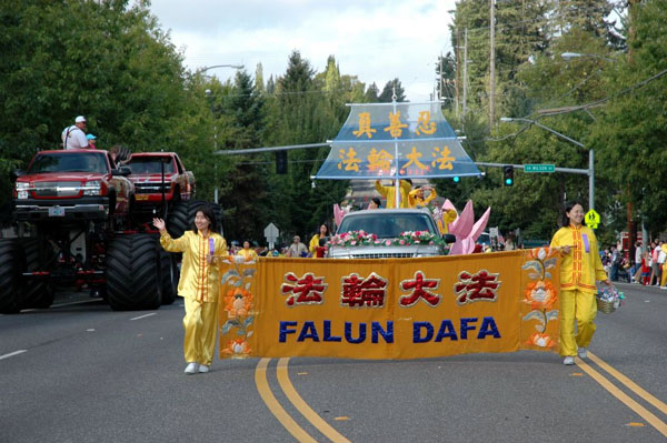 华盛顿州法轮功学员参加艾伦斯堡市游行展现大法的美好 深受当地民众的欢迎2006-9-2