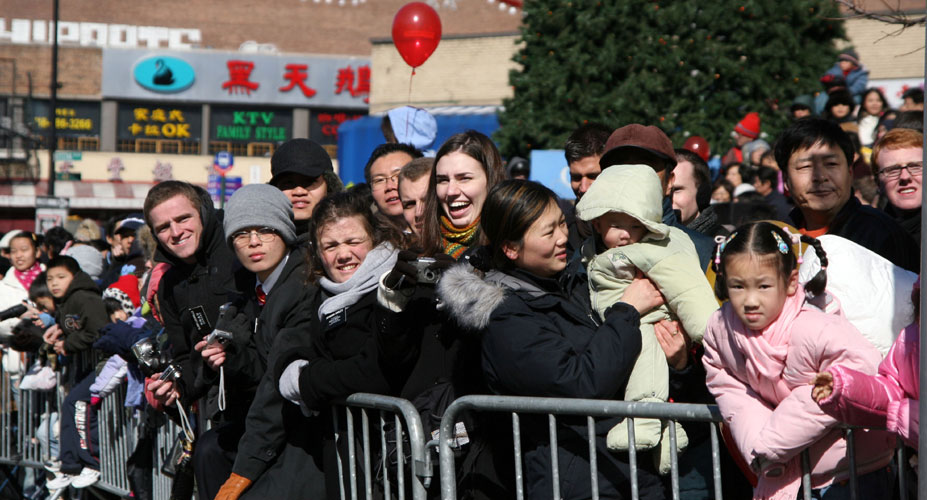 法轮功学员参加纽约华埠庆中国新年游行展现大法的美好 2007-2-25