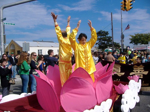 轮功学员应邀参加美国亚裔协会举办的大游行,观众盛赞法轮功。