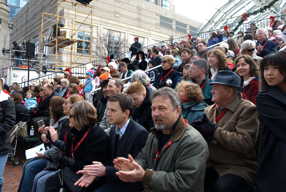 法轮功学员参加马里兰州感恩节游行街道两旁的观众被这清新、祥和的场面所感动2008-11-22