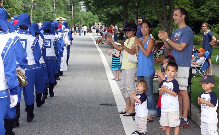 法轮功学员受邀参加罗德岛州Woonsocket市的“秋之节”大游行,浩荡的阵容赢得观众的鼓掌2008-10-13