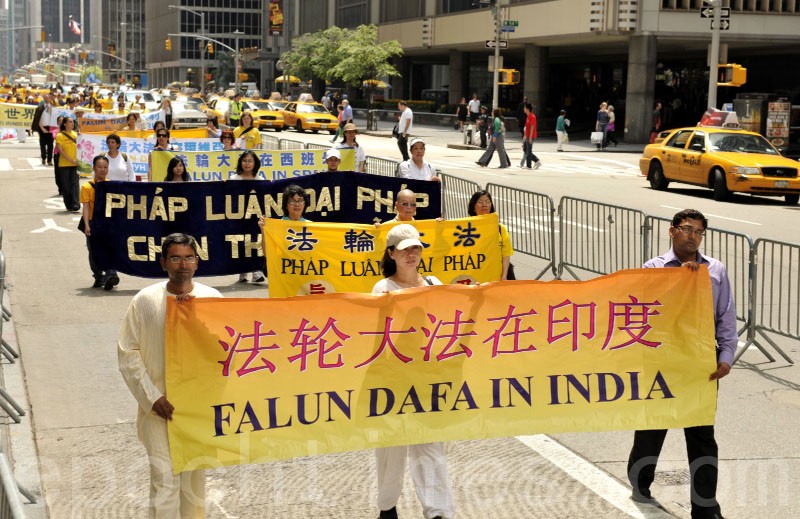 六千名法轮功学员在纽约曼哈顿举行以“呼唤良知,停止迫害”为主题的游行 纽约民众认为迫害该结束了图)