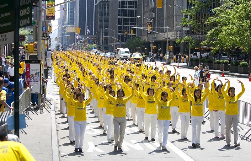 六千名法轮功学员在纽约曼哈顿举行以“呼唤良知,停止迫害”为主题的盛大游行 当地民众认为迫害该结束了